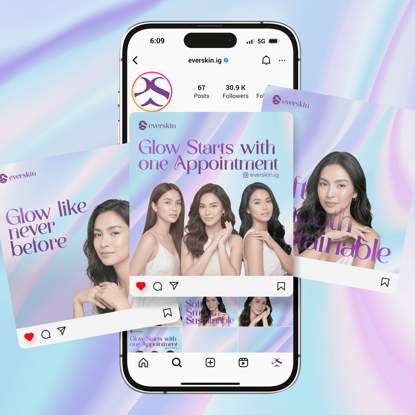Everskin is a beauty clinic brand focused on helping people achieve naturally glowing, healthy skin. The design reflects elegance, luxury, and premium care—using refined visuals that communicate trust, sophistication, and high-quality skincare services.