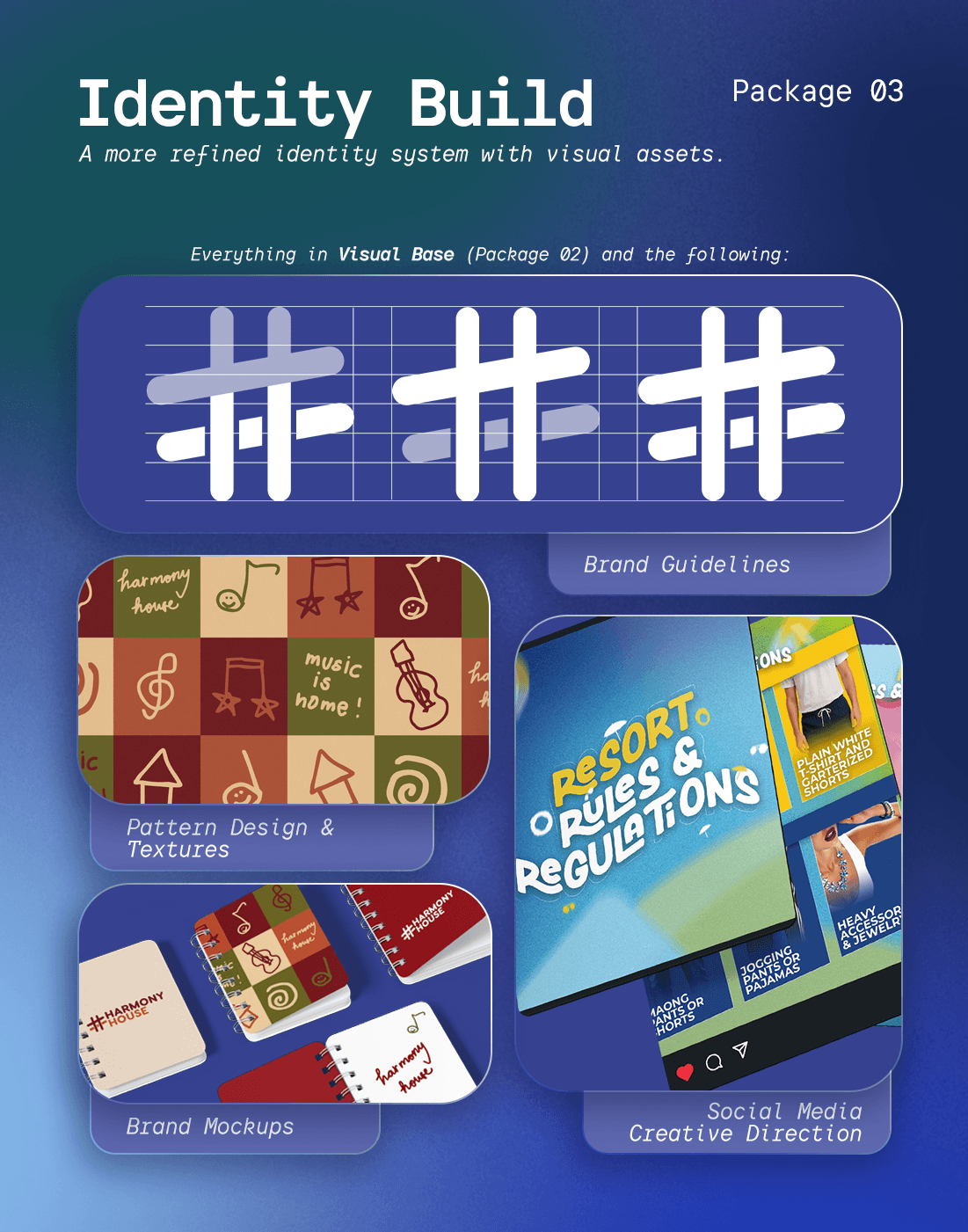 These are the design packages I offer, thoughtfully crafted to suit a variety of brand needs. Feel free to choose the one that best aligns with your vision. For pricing details and further inquiries, please visit the contact page. Thank you!