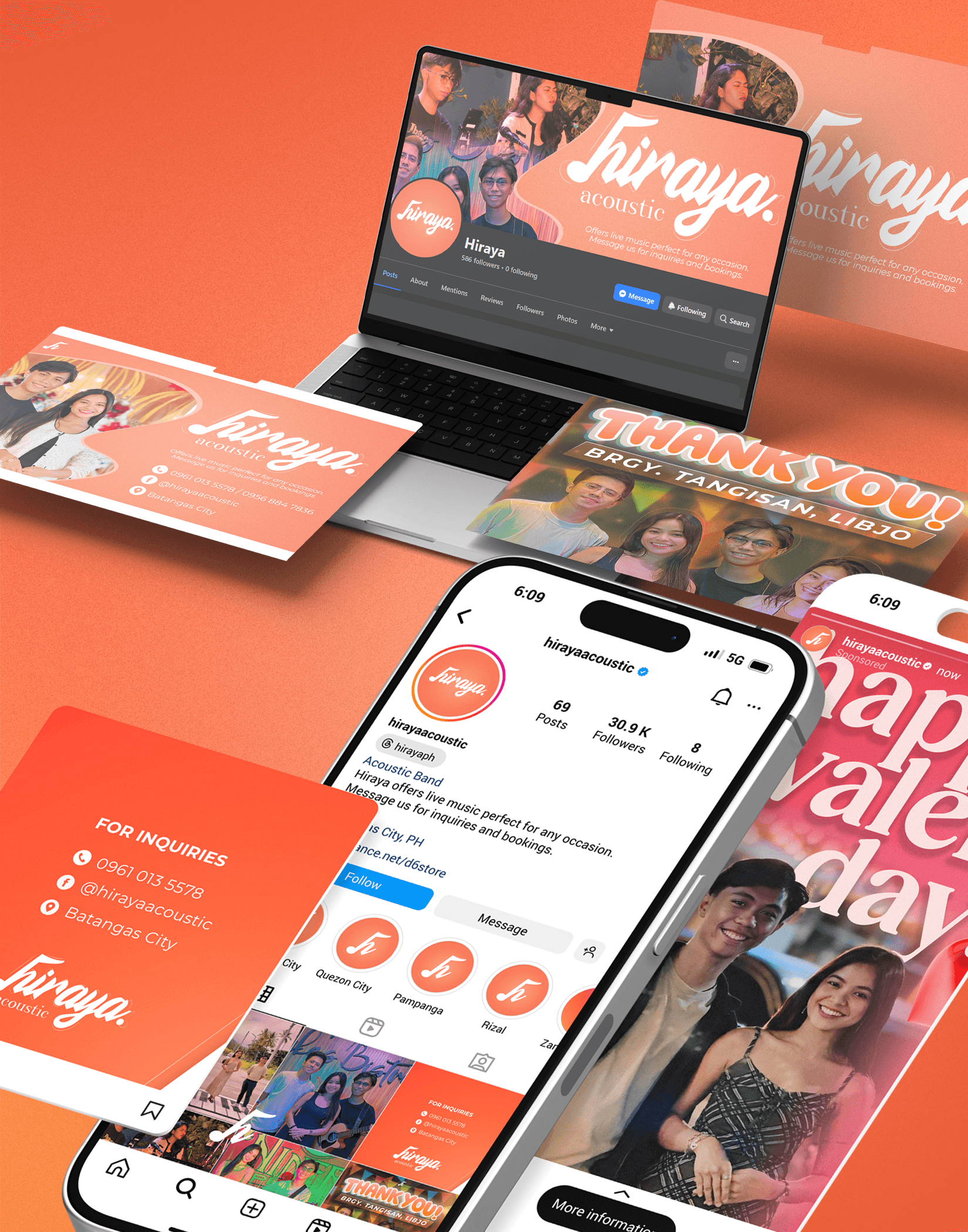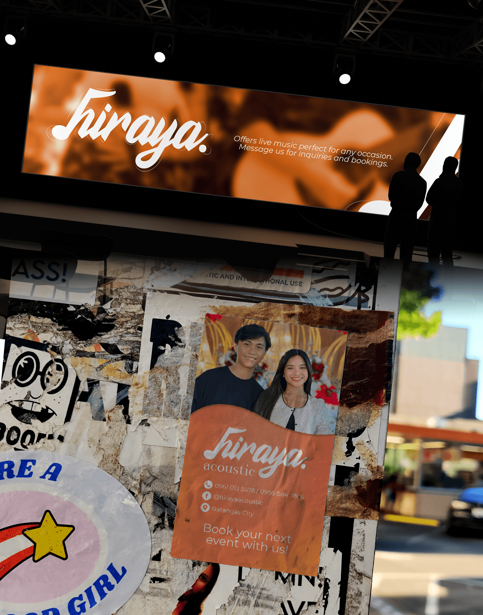 Inspired by the band’s acoustic sound, this design uses a warm orange palette to reflect their laid-back vibe. A subtle music note in the brand name adds a simple yet meaningful nod to their identity as an acoustic group.