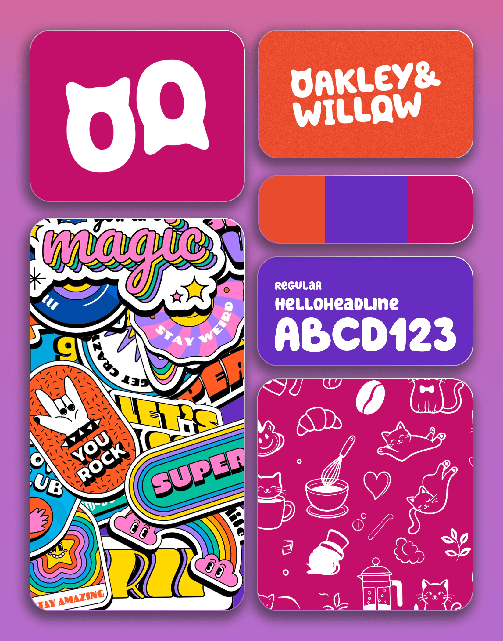 Oakley & Willow Cafe & Restaurant is a vibrant, homey café that uses lively colors to create a warm and inviting atmosphere, complemented by the charming presence of cats that make the experience even more cozy and unique.